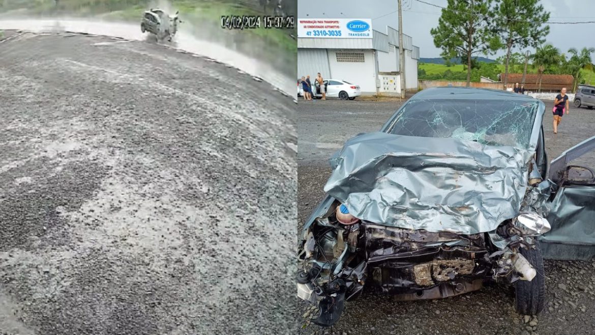 Conforme a gravação, chovia no instante da colisão. O motorista do Hyundai Tucson de Blumenau se perdeu na rodovia e invadiu a contramão, atingindo o Fox no Km 178,8. Segundos depois da batida, o condutor do carro de Blumenau, de 46 anos, desceu do veículo. Com ele havia uma passageira, que teve fratura no tornozelo e foi levada ao hospital de Pouso Redondo.